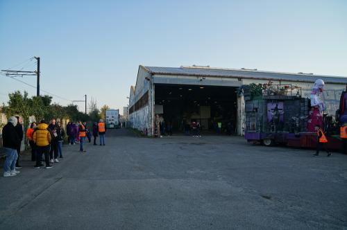 préparation sur le parking de l'atelier