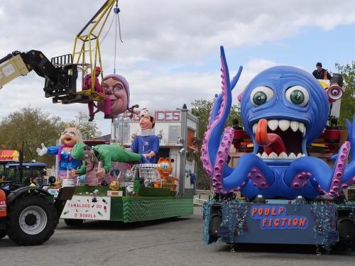 Remontage des chars avant le défilé de nuit