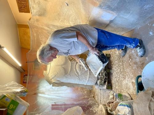Note | Daniel Dupouet est en train de fabriquer le corps d'une grosse tête dans son atelier à domicile |