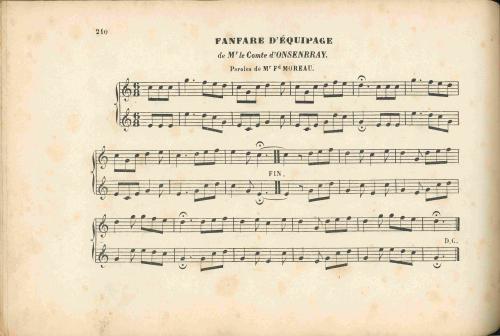| Note | Fanfare d"équipage de M. Le Comte D'onsembray - Paroles de M. Ferdinand Moreau |