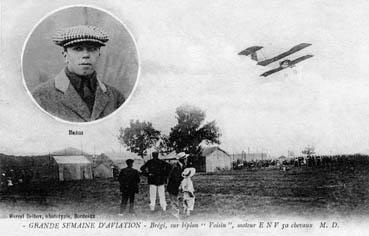 Grande semaine de l'aviation - Brégi, sur son biplan "Voisin", moteur ENV