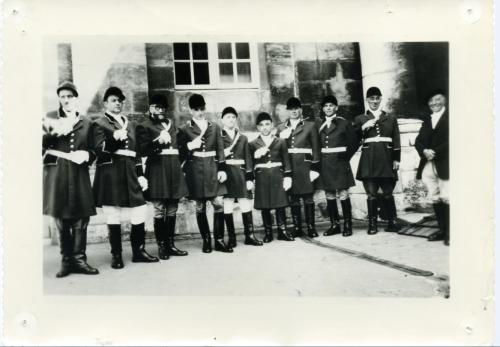 Note | Lors d'une prestation -Gàd : MM Chatelard, André Serre, Pierre Ballarine, X,X, Pierre Maçou, directeur, Gérard Bouras, X,X,X |