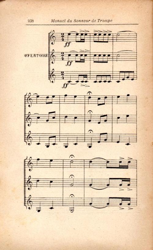 Usage d'après l'analyste circonstance : dévotion, religion ; circonstance : rencontre de sonneurs de trompe ; circonstance : vénerie ; circonstance : concert ;