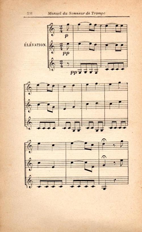 Usage d'après l'analyste circonstance : dévotion, religion ; circonstance : rencontre de sonneurs de trompe ; circonstance : vénerie ; circonstance : concert ;