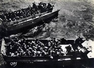 Arrivée des péniches de débarquement sur le sol de France
