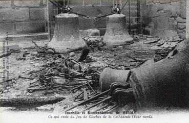 Incendie et bombardement de Reims - Ce qui reste du jeu de cloches de la cathédrale