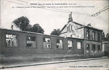 Boulevard Lundy et rue Courmeaux - Les écoles après avoir été bombardées furent incendiée