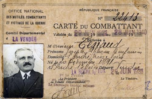 Carte du combattant de Joseph Tenaud