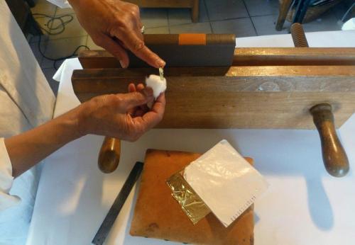 Pose d'un morceau d'or