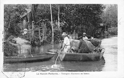 Mots Clé canal, fossé, douve, ; rivière, fleuve, cours d'eau, ruisseau ; bovin, boeuf(s), vache(s), veau(x) ; hydrographie ; batellerie fluviale ; élevage agricole ; technique(s) agricole(s) ; barque(s) ;