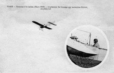 Note L'aviateur De Lesseps sur monoplan Blériot en plein vol