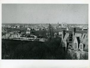 Note | Au premier plan, le Logis du Roi du Château de la Groulaie laissé à l'abandon. Au second plan, les péniches sur le port de Blain. En arrière plan, l'ancienne église et la nouvelle en construction (la construction débute en 1889 et se termine en 1892, sans le clocher, qui sera bâti en 1959). |