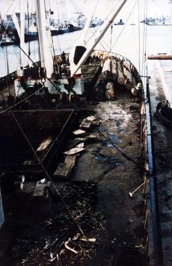 Pont d'un cargot de billes de bois à Port-Soudan