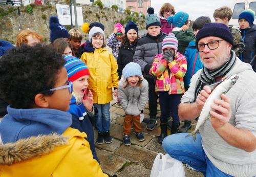 Présentation de poisson à de jeunes mousses