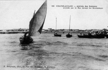 Arrivée des bateaux poussés par le flux devant les boucholeurs