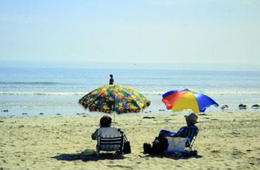 Repos sous ombrelles à la plage le 18 juin