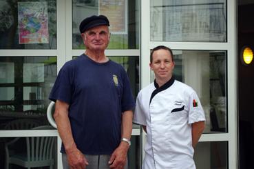 Jean-Claude Moreau et le chef de cuisine du restaurant Le Robinson