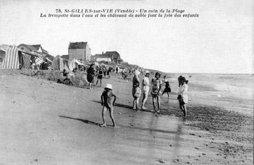 Un coin de la plage. La trempette dans l'eau et les châteaux de sable