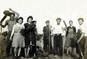 | Note | de g. à d. : Georges Roy, Jeanne et Gilberte Corbineau, Armand Dugast, Gilbert Hervouet, René Hilléreau, Célestine Corbineau, Eugène Arnaud |