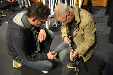 | Note | Guillaume Sourisseau et Joël Sicot penchés sur la clarinette le 25 mai 2013. |