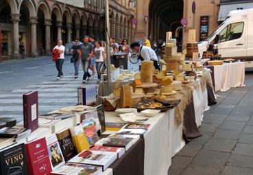 Bologne - Vente de produits locaux sur la piazza Cavour
