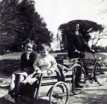 Note | Photo prise dans le parc du château des Jahardières. On y voit les enfants de la famille de Lassat de Pressigny : Marie-Jacqueline, épouse de M. Etienne-François Géraud de Galassus (9 ans) et François (4 ans) |