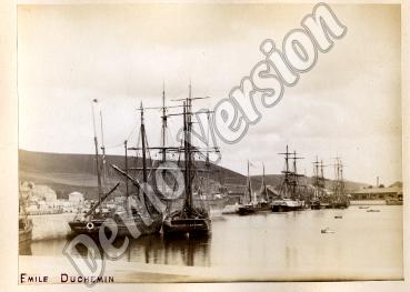 Note | Trois sloop à tape cul : F897 Jeune Henry construit en 1873 armement Paul Henry et F917 Americain construit en 1875 pour Bourgain. Trois mâts et brick en arriere plan. |