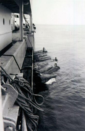 Georges Tanneau en chargement de bois dans la lagune Ebrié, Abidjan