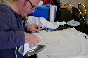 Repassage de la dentelle du dalais d'un fond de coiffe