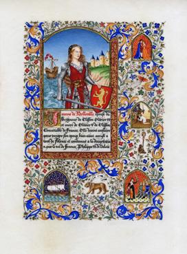 | Note | Enluminure de style gothique XVème siècle sur Jeanne de Belleville, au format 21x30cm (30x40 hors tout) exécutée sur un parchemin de chèvre. |
