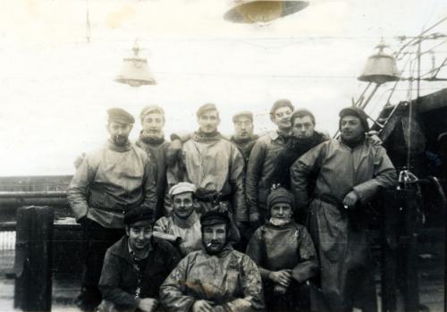 L'équipage du chalutier morutier fécampois Charles Prentout en pêche en mer blanche