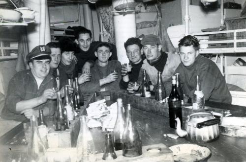 Equipage à table à bord du chalutier fécampois Cap Bojador