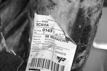 | Note | viande de race maraîchine dans l'atelier de découpe, le 11 juin |