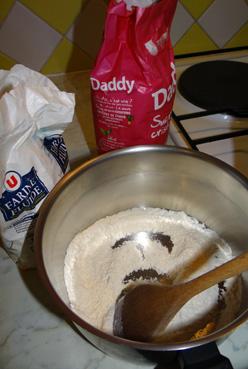 Préparation de la bouillie - Mélange du sucre et de la farine