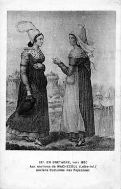 | Note | "En Bretagne, vers 1830. Aux environs de Machecoul. Anciens Costumes des Paysannes." |