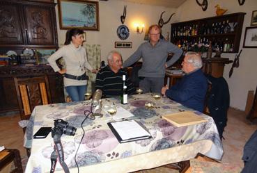 Note | de g. à d. Fanny Pacreau, ethnologue, Alphonse Joyeux, témoin, André Linard, journaliste, Jean-Pierre Bertrand, ethnographe, président d'EthnoDoc. |