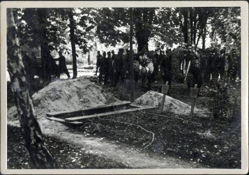Mots Clé guerre 1939-1945 ; funérailles, funéraire, tombe(s), enterrement, enterrer ; prisonnier(s), prison ; militaire(s), soldat(s), ;