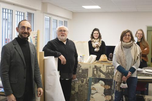 Dans les locaux de NEMO avec son président Paul Billaudeau et Stéphanie Mercier-Bernardie, l’équipe de l’OPCI et Jeanne (stagiaire)