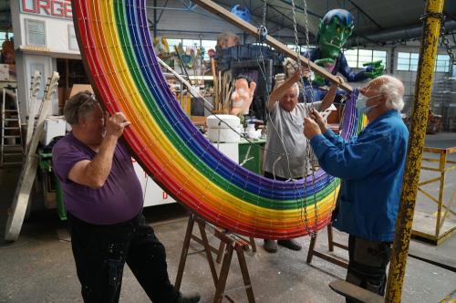 | Note | Trois membres de Sud Loire Carnaval montent un élement (arc-en-ciel) sur leur char |