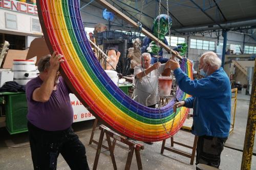 | Note | Trois membres de Sud Loire Carnaval montent un élement (arc-en-ciel) sur leur char |