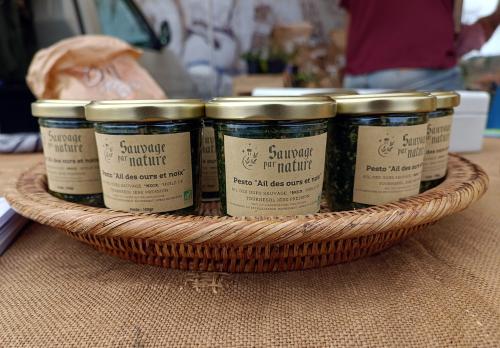 Pots d'ail des ours sur le marché