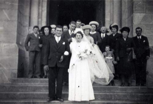 Noce posant devant le portail de l'église