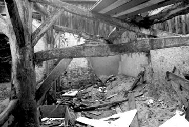 Démontage de la charpente de la grange de l'Îlot
