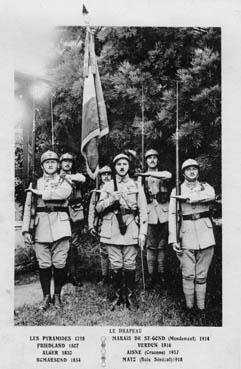 | Mots Clé | caserne, local militaire ; militaire(s), soldat(s), ; drapeau(x) ; Armée (corps social) ; |