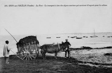 Le transport à âne des algues qui serviront d'engrais pour la culture