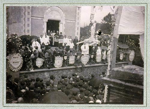 Mots Clé mission, évangélisation, mois de Marie ; statue(s) religieuse(s) ; ecclésiastique(s) : curé, prêtre, abbé, religieux(se) ;