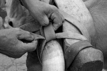 Journée d'étude du liage des bovins, à la ferme du Puy du Fou