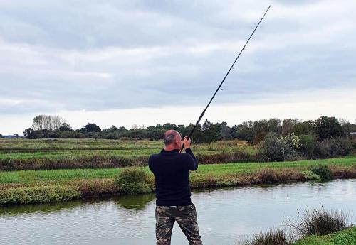 Pêcheur à la ligne dans le marais des Galtières