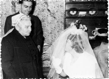 Dernière femme à porter la coiffe, félicitant une mariée