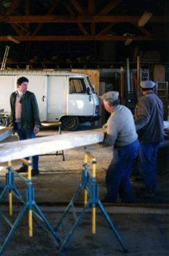 Construction de la brouette géante - Les brancards en fabrication